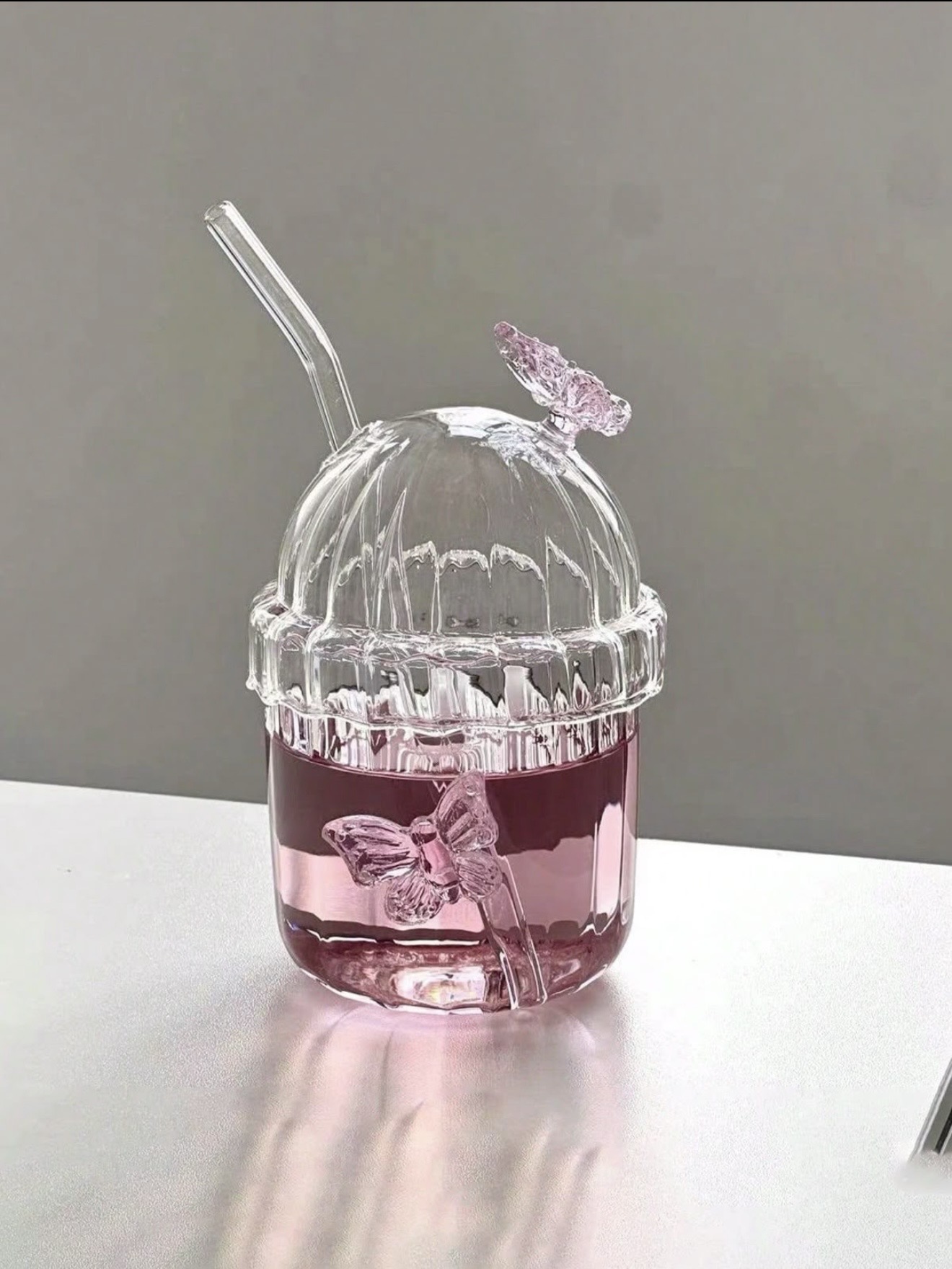 لیوان پیرکس پروانه صورتی🦋